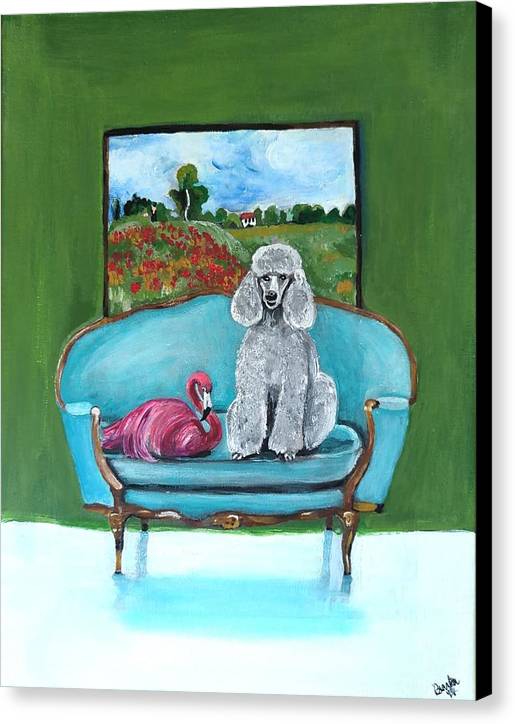 Poodle Flamingo on Chair - Canvas Print