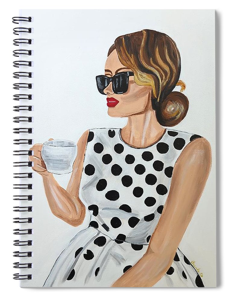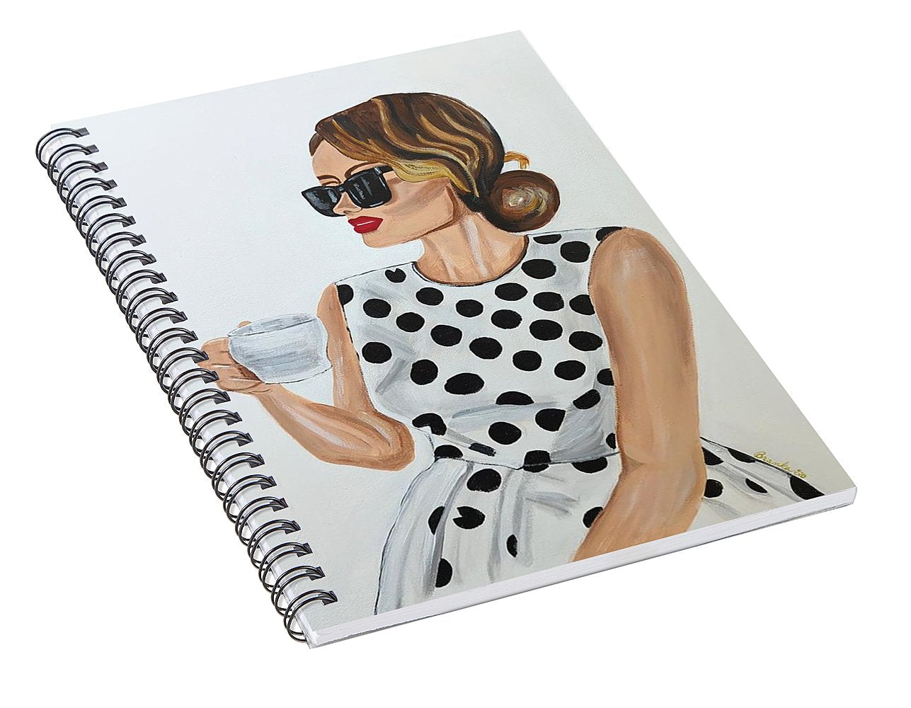 Our spiral notebooks are 6" x 8" in size and include 120 pages which are lined on both sides. The artwork is printed on the front cover which is made of thick paper stock, and the back cover is medium gray in color. The inside of the back cover includes a pocket for storing extra paper and pens.