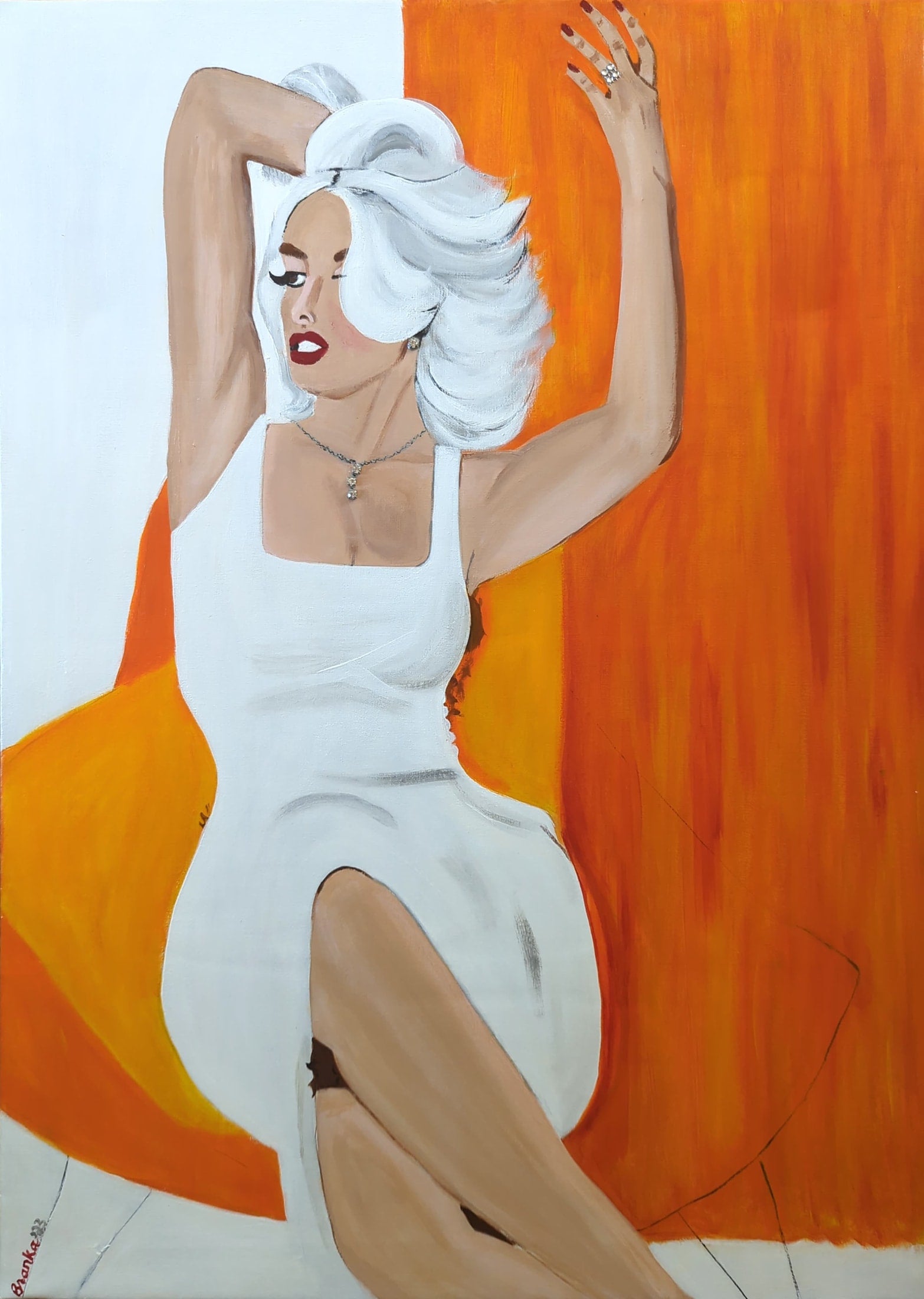 Original - Jaime - (acrylic and mixed media painting on 23" x 31" repurposed canvas)